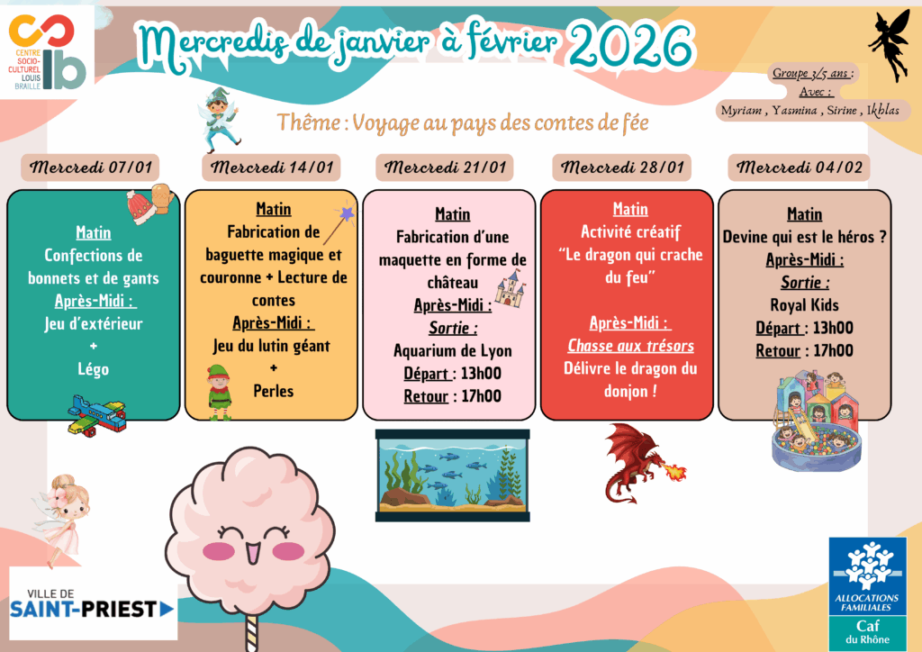 Programmes mercredis de Janvier à Février 2026